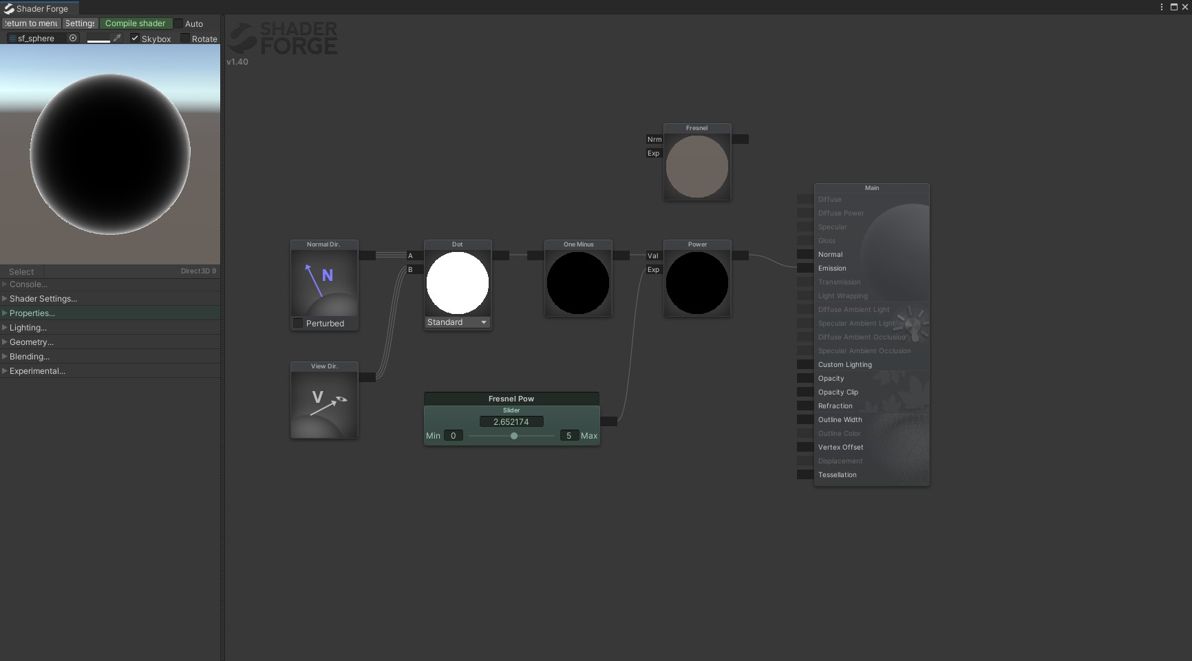 其实图上可以看到,在这两个引擎中已经准备好了fresnel的节点可以直接调用,这里只是为了介绍原理因此使用向量点积的方式进行了效果实现。