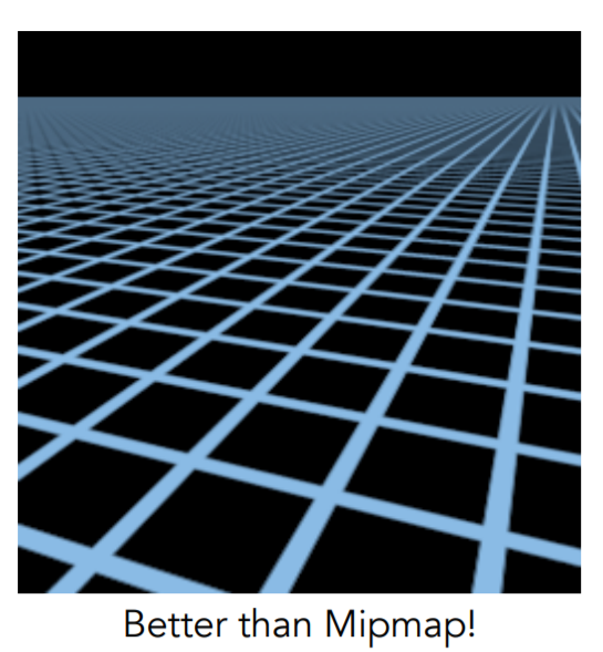 虽然和一开始的点采样方式相比有了很大的进步,但有一个严重的问题是,远处的地板产生一种过曝的现象,完全糊在了一起。该如何解决这个最后的问题呢——各向异性过滤。