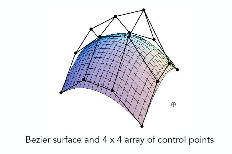 其实在理解了贝塞尔曲线之后,贝塞尔曲面的原理也是十分容易理解的了,无非是一个从2维到3维的过渡。